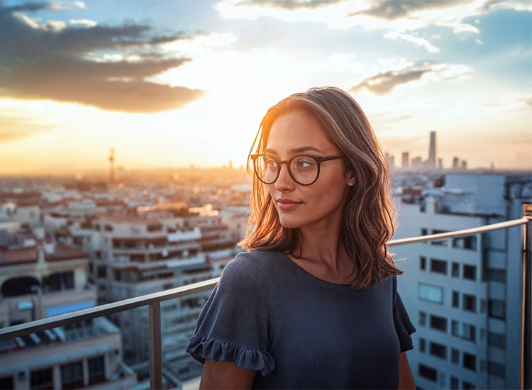 Nuestros lentes fotocromáticos se adaptan automáticamente a cualquier situación de luz, permitiendo una visión relajada y sin deslumbramientos, en todo momento; son absolutamente transparentes en interiores y se tintan en exteriores en función de las condiciones meteorológicas.